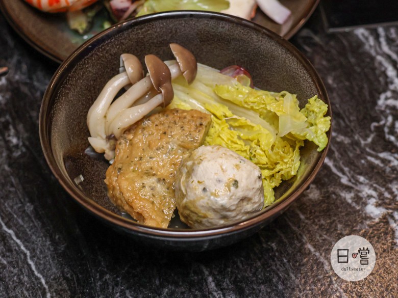 菜盤裡也有平常比較少見的蘋果跟獅子頭,原本以為蘋果煮進去火鍋裡會很奇怪,但意外的讓蘋果吸收到火鍋的湯汁,煮到有點軟爛的口感跟朋友都滿喜歡😋而獅子頭也可以入火鍋讓人很意外,咬下去可以吃到肉香跟吸收火鍋湯的肉汁,吃起來濕潤無違和感