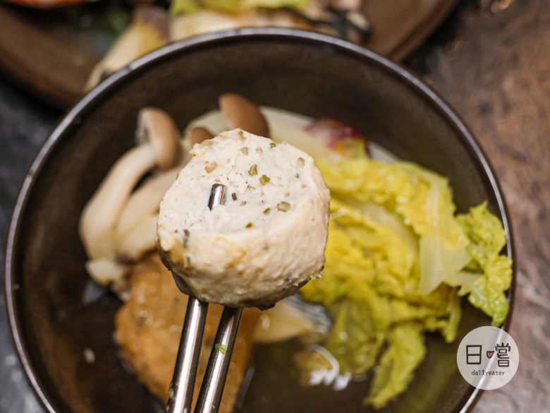 前面介紹套餐內附的甜不辣跟魚丸,可能看文字會想說這不就是市面上很常見的東西?有什麼稀奇?但他們家的甜不辣是使用金目鱸魚打成的魚漿製作而成,而且兩種配料內也都加了褐藻!隨便咬一口都可以吃到綠色一顆顆的褐藻~
