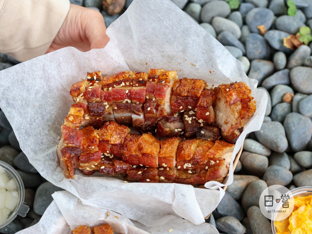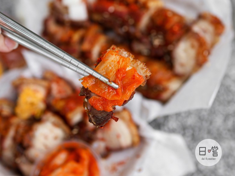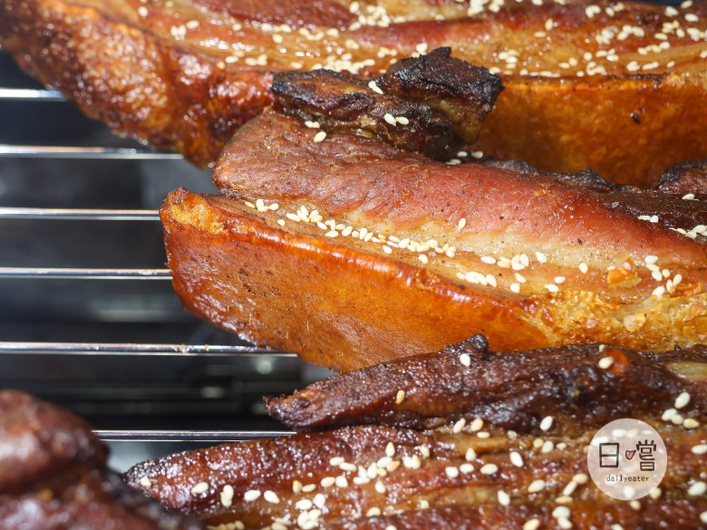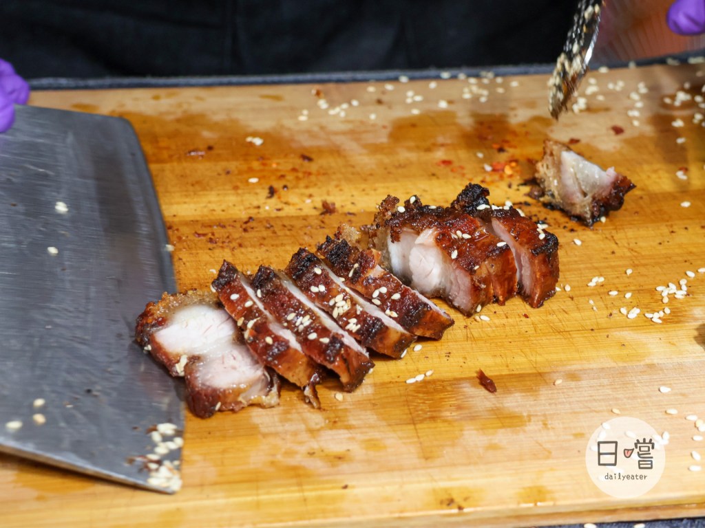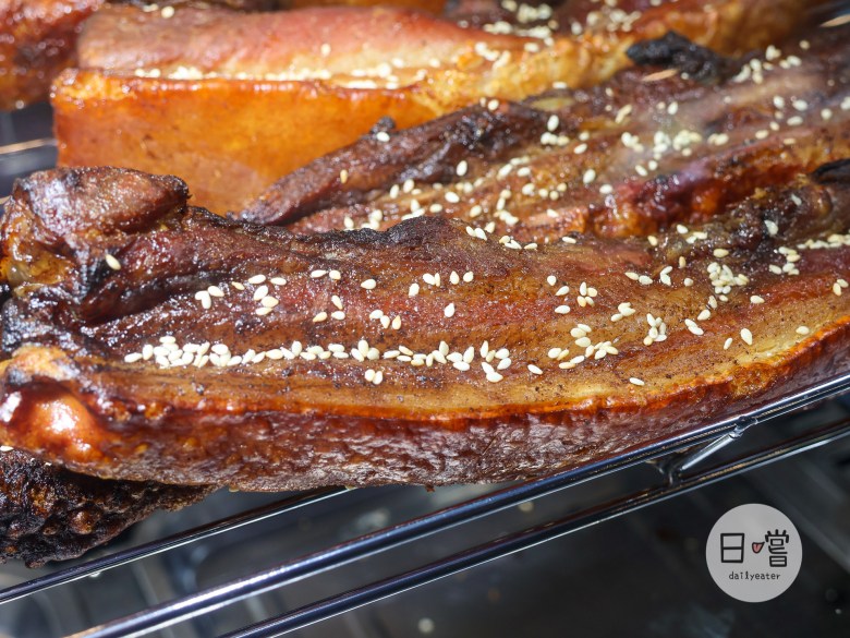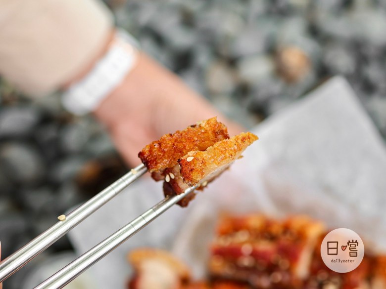 看著剛氣炸好的脆皮豬真的會讓人忍不住口水直流,金黃色的外皮還會灑上不少的白芝麻粒!有些比較焦黑的部分店家也會把它做處理,讓大家吃到的是最剛好的口感😋