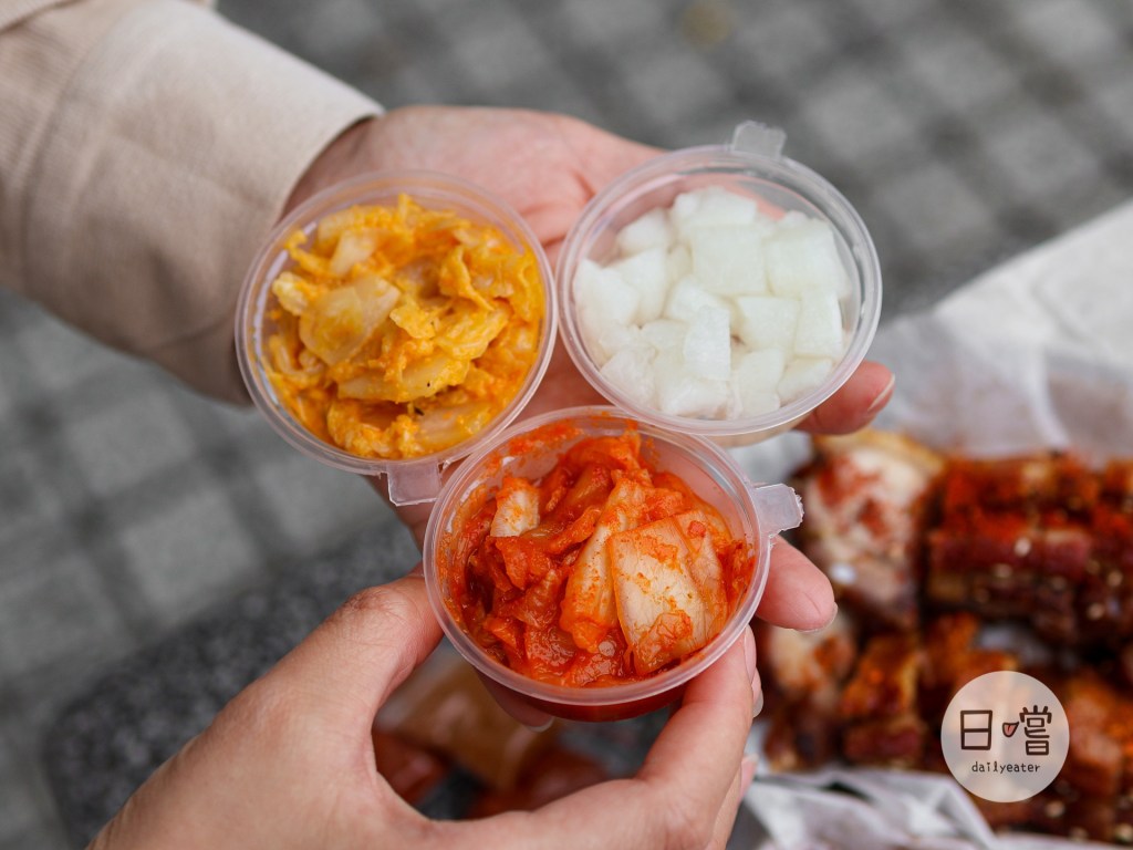 清脆的蘿蔔跟脆皮豬一起吃是脆上加脆的口感,多了蘿蔔本身的清甜吃起來也更加爽口👍韓式泡菜跟黃金泡菜雖然都是泡菜,但黃金泡菜給人甜甜辣辣的感覺還有濃郁的蒜味,另外韓式泡菜則是酸酸辣辣的也好開胃😋