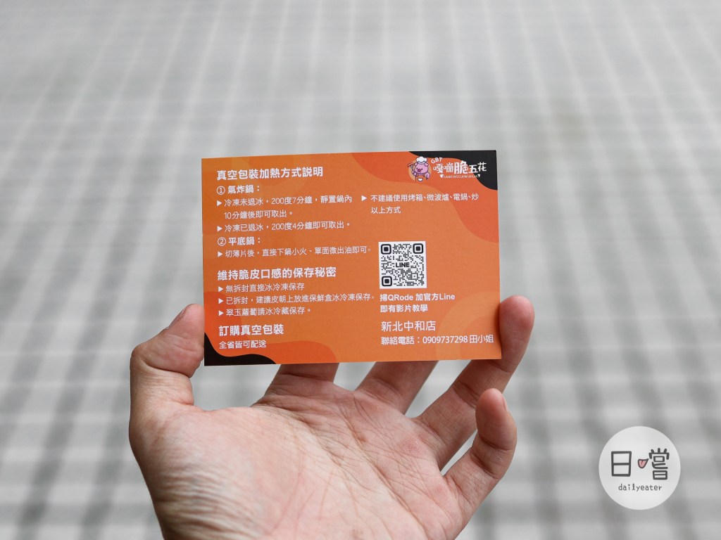 貼心的是買完店家還會給我們加熱小卡,不管是要看影片、或是看文字都可以知道要如何讓脆皮豬加熱的更好吃😆