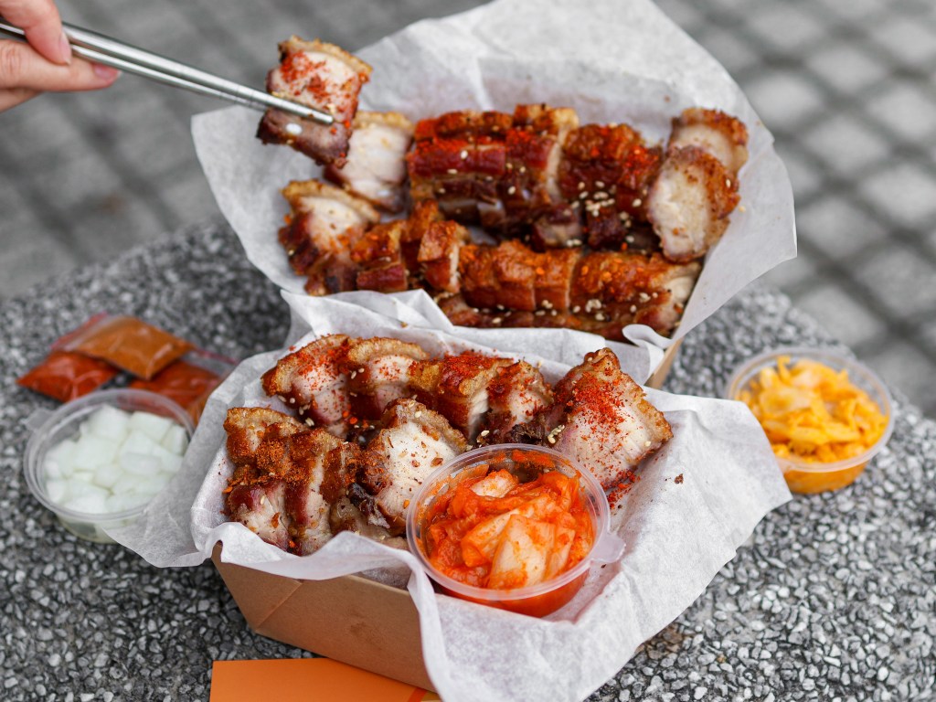 在南部起家的GBT嘎嘣脆五花,現在在中和的和平黃昏市場也可以吃的到了😍是除了林口外在雙北市的分店!GBT嘎嘣脆五花除了在中和有分店,其他像基隆、林口、台中、台南、高雄跟屏東也都有分店可以購買!