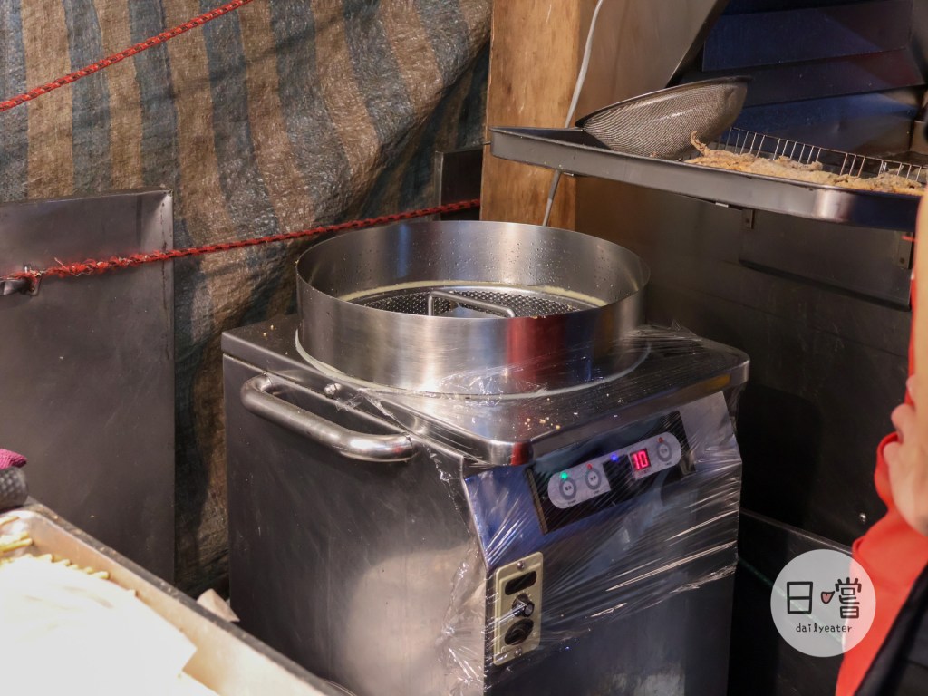 魷魚裹上薄薄的麵衣後下油鍋炸,炸起來的魷魚直接放進去脫油機把油脫乾淨!有時候吃這種炸物最怕的就是吃到油耗味很重,但光是這台脫油機就讓人超級放心🥰