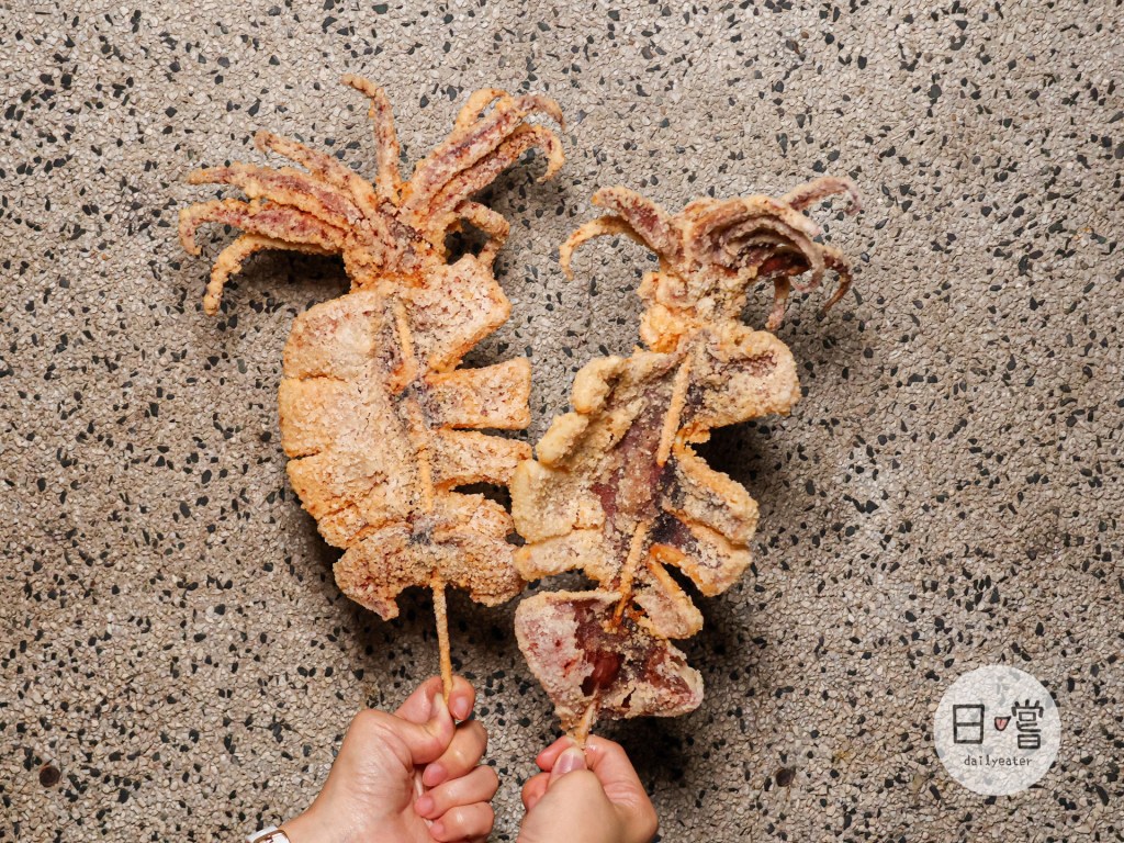 炸好的魷魚可以選擇要切或不切,如果沒切的話是完整的大魷魚在面前,走在路上吃路人都會多看一眼😂