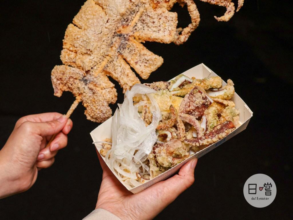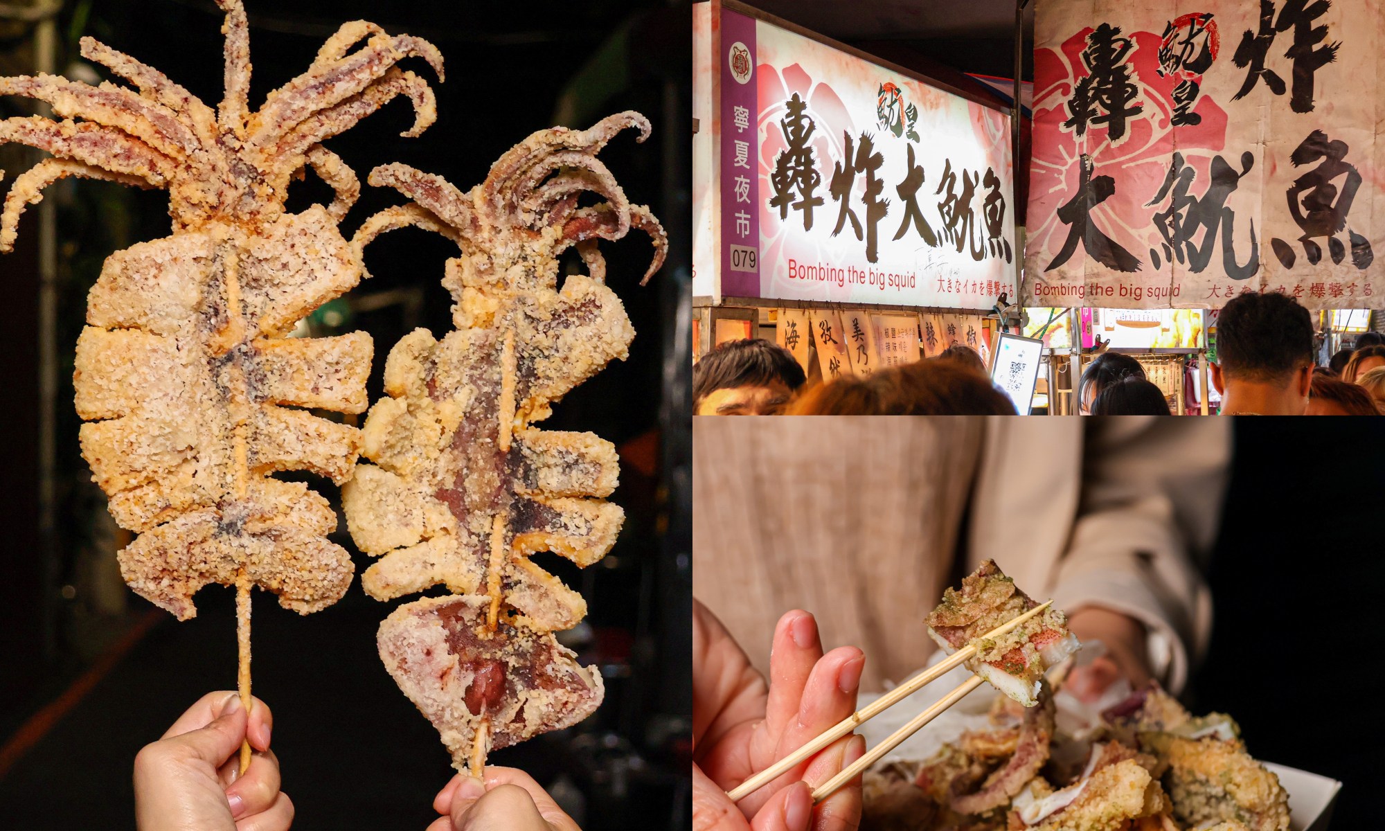 走過路過不能錯過的轟炸大魷魚,光看這麼大一隻的魷魚馬上成為夜市人潮的焦點😂魷魚裹的麵衣不會很厚,所以吃到更多的是魷魚本身那Q彈又帶甜的滋味