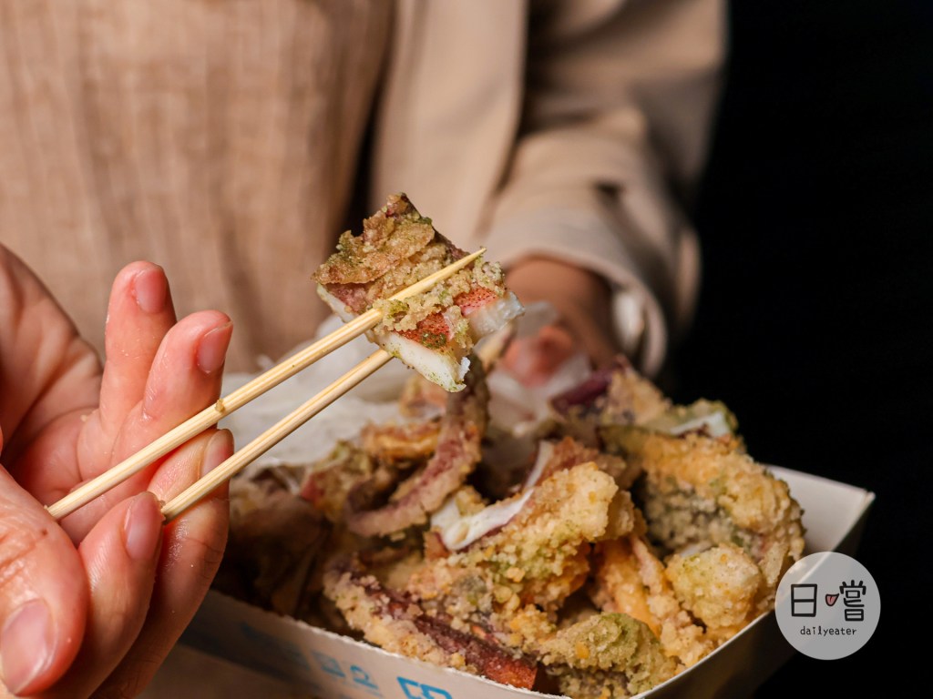 轟炸大魷魚有六種口味可以選擇,海苔、孜然、美乃滋、辣味、蜂蜜芥末還有椒鹽可以選擇,可以單口味也可以兩種風味雙拼😍