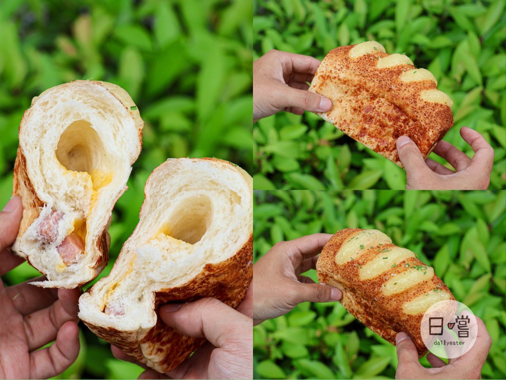 使用靜岡抹茶粉製作的吐司外皮裡面有紅豆跟麻糬,撕開那Q彈的麻糬真的是超級療癒😆紅豆餡料不會太軟爛,一定要同時吃到吐司、紅豆跟麻糬,入口後那多層次的口感會覺得看似普通的吐司竟然可以有這麼豐富的味道