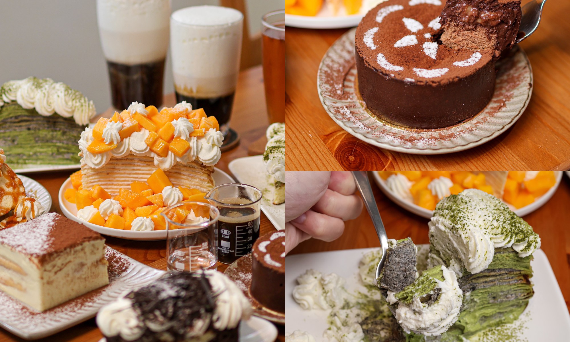 這次為了芒果千層而來但卻沒想到意外吃到好多好吃的甜點😍在千層部分很喜歡芒果跟千層吃起來很清爽而且大份到兩三個人吃絕對沒問題👌而抹茶千層同時能吃到芝麻跟抹茶的苦跟甜