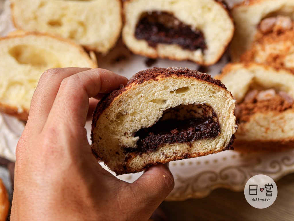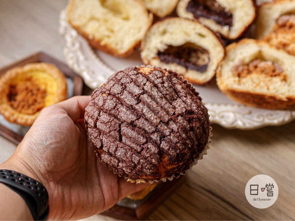 造型像是貝殼但其實是菠蘿麵包的貝殼巧克力,撥開可以看到麵包裡那內餡是使用進口的可可製作而成。除了酥脆的外皮外還有濃郁的巧克力味,可可餡吃起來還滿濕潤讓整個麵包體吃起來完全不乾🤤而且吃起來甜而不膩吃完後悔怎麼不多買幾顆😂