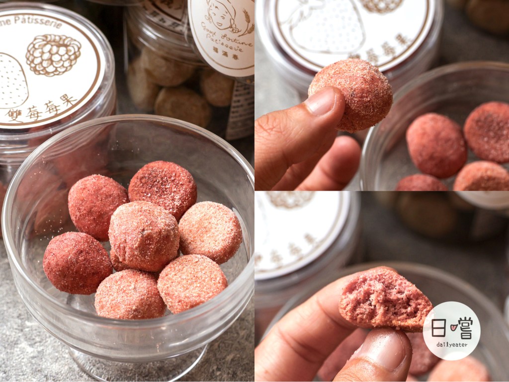 可以看到莓果口味的雪球是很漂亮天然的粉紅色,雪球結合了莓果的香氣和雪球本身的的酥香,每一顆餅乾都充滿了新鮮的莓果風味,帶來一抹清新酸甜的口感。