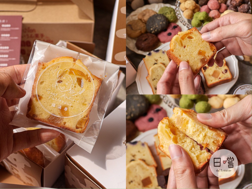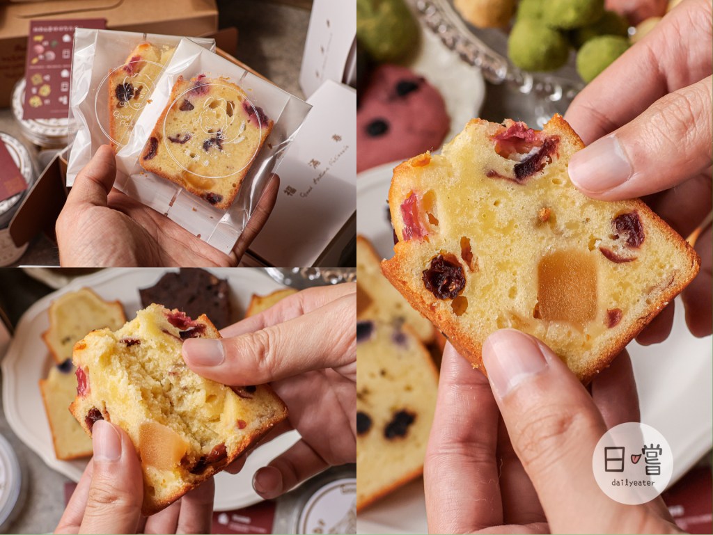 除了可以看到磅蛋糕中有不少的水果在裡面外,平常不愛吃甜的朋友在吃到這幾款磅蛋糕都讚不絕口👍🏼蛋糕體表現濕潤又不會覺得太過甜,幾款口味加了水果對於蛋糕來說是非常加分!酸酸甜甜的滋味就算吃多一點也不覺得會很負擔