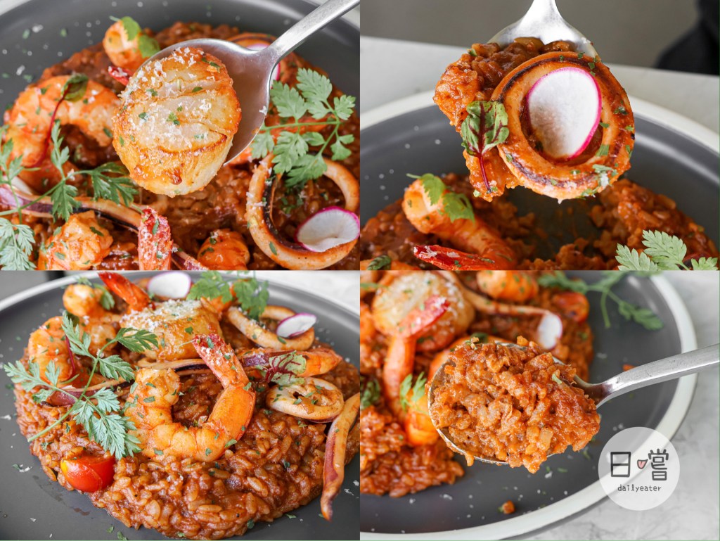 結合了干貝、魷魚圈、白蝦等海鮮的蝦膏海鮮干貝燉飯,以鮮甜的海鮮為主角,融合了番茄的酸甜和帕瑪森乾酪的濃郁滋味😋