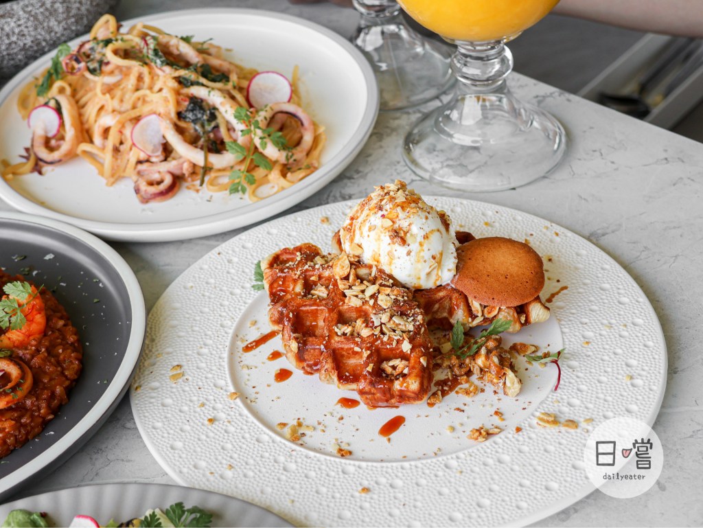 除了舒適的環境,貓禾咖啡的餐點更是在水準之上。無論是濃郁的香辣鹹蛋醬炒魷魚圈細扁麵還是海鮮控愛的蝦膏海鮮干貝燉飯,都能讓你的味蕾享受到無比的美味。如果本身是甜點控的話,不要錯過他們的可朗芙鬆餅!金黃酥脆還有冰淇淋、貓舌餅乾口感真的很有層次😍