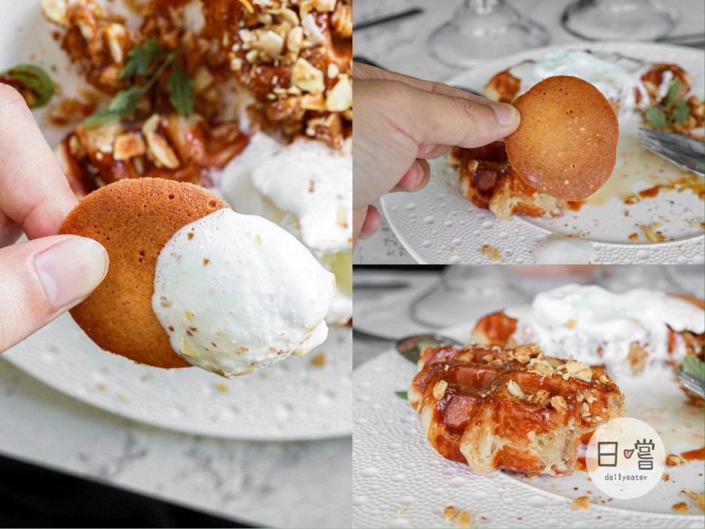 由兩塊酥脆金黃的可朗芙構成,外皮酥脆且層層疊疊外還搭配了濃郁的牛奶糖冰淇淋~香甜的牛奶風味還有法式焦糖醬點綴增添了香甜和深度的味道😋將酥脆、濃郁、香甜和脆度融合在一起,愛吃甜點的人不能錯過!