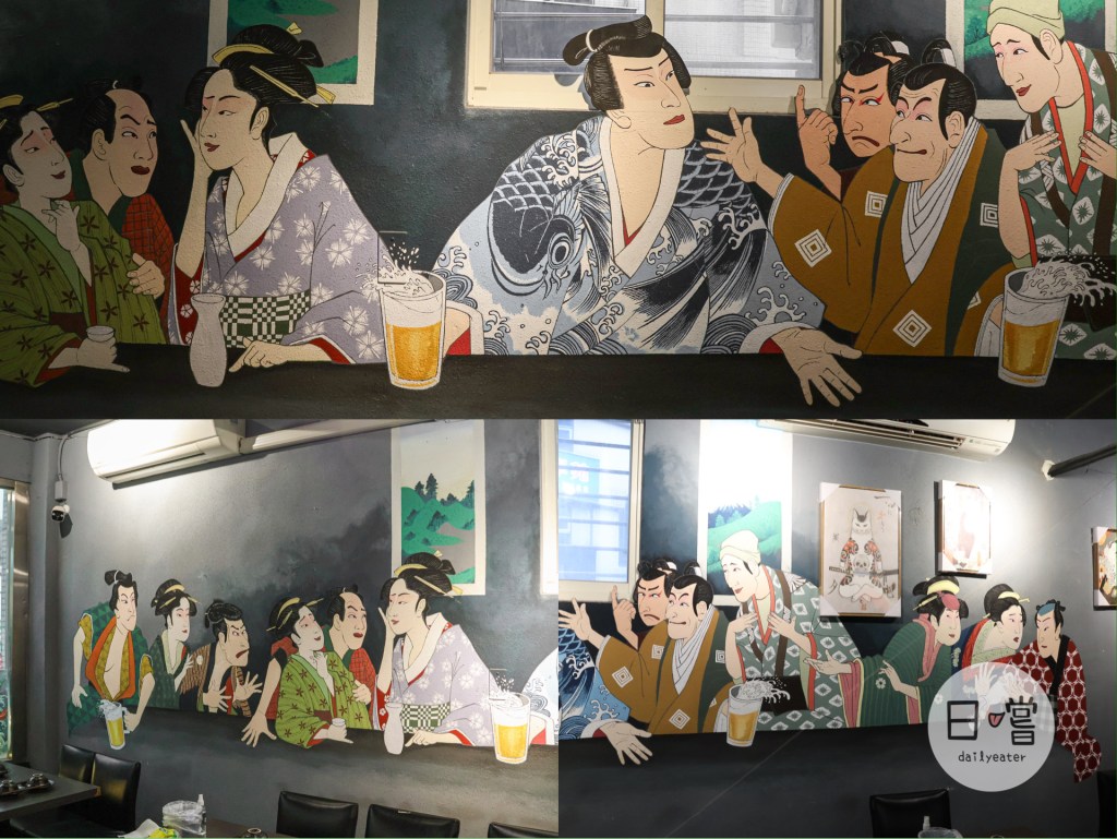 最特別的莫過於這一整面手繪的牆壁,有點像浮世繪風格的畫作讓人覺得店家在環境這種細節上的用心👍🏼
