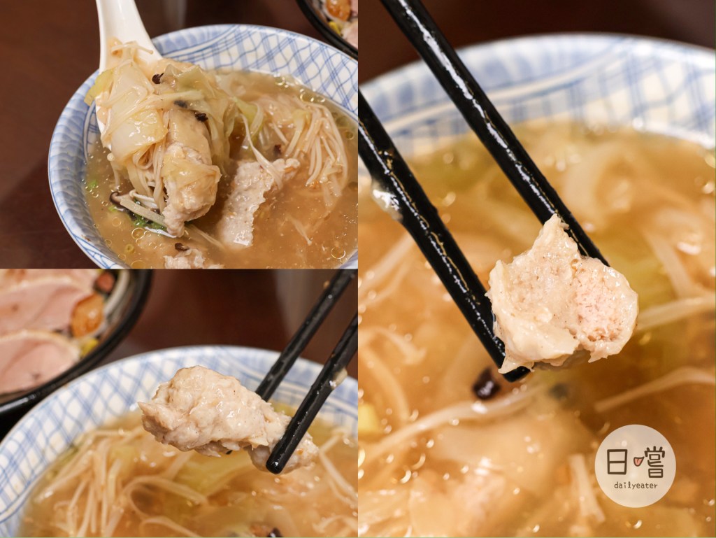 還記得在店門口時除了看到招牌上的鴨肉麵、鴨肉飯,還有大大紅字寫著「辦桌肉羹」,能夠與他們家齊名想必是除了鴨肉之外的招牌扛壩子!一上來就可以看到這碗肉羹的料真的多到不行😆肉羹的口感紮實咬下去是滿滿的豬肉香,湯頭口味偏甜裡面肉羹不少外也有滿滿的香菇、筍絲等料