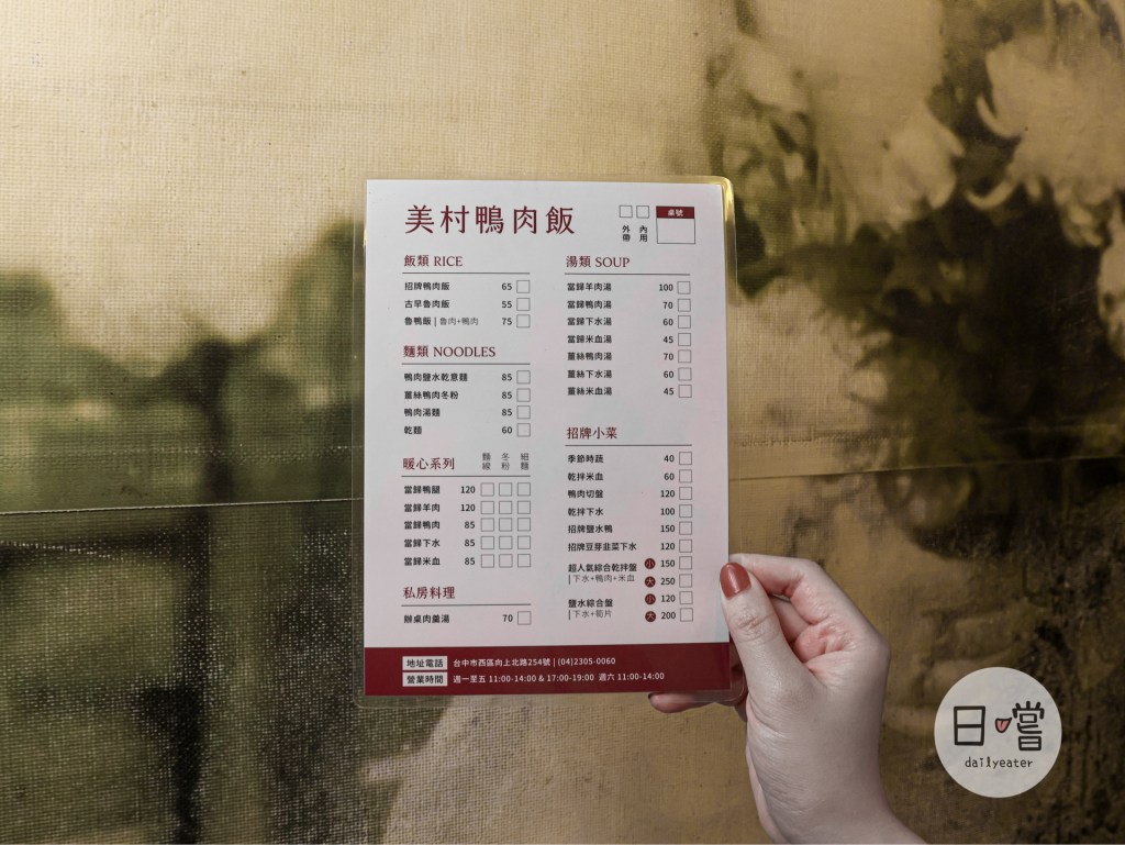 從東興路搬來向上北路的美村鴨肉飯可是深受當地人所喜歡,各式各樣的鴨肉料理,從鴨肉飯、鴨肉麵到切盤鴨肉,甚至是少見的鹽水系列也都有😍