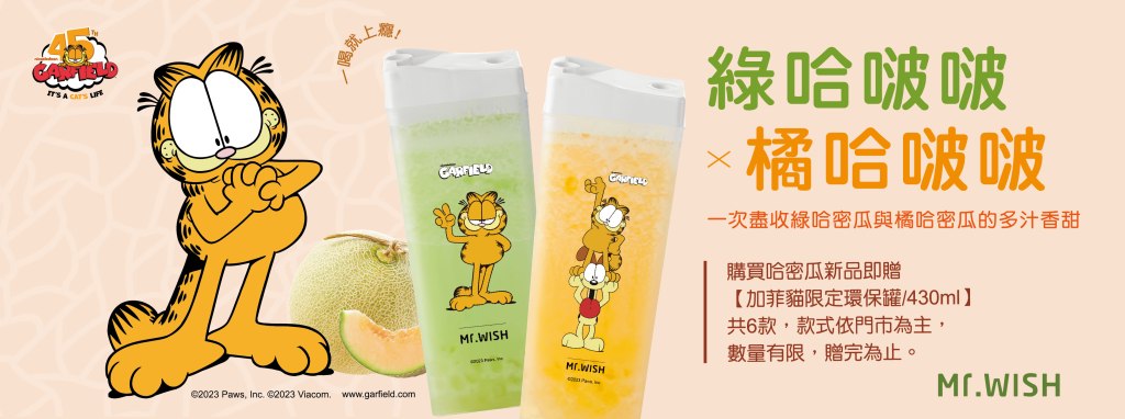 之前就一直很想喝Mr. Wish跟加菲貓聯名的哈密瓜飲料,沒想到一度熱銷到缺貨根本買不到🥲還好最近看到它又回歸了而且還帶了兩款不同造型的環保罐!