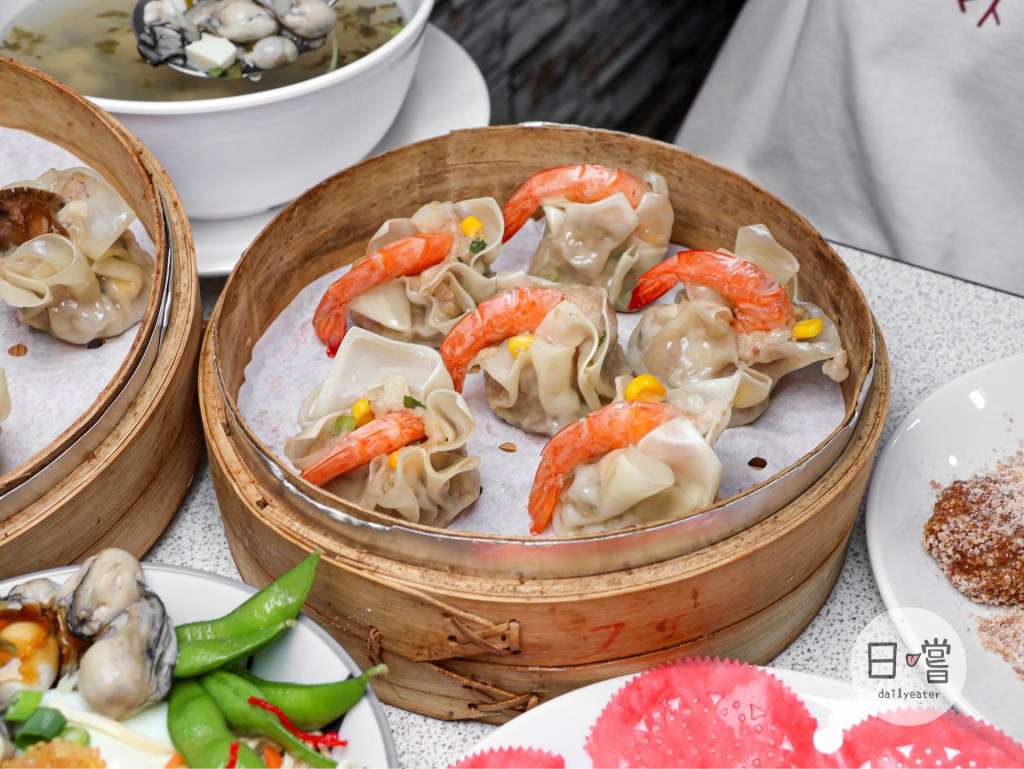 另一道鮮蝦燒賣一上桌,我只能說老闆真的太會了!直接把蝦子擺在燒賣外面,一上桌時看到一整隻白蝦在上面真的讓人一直拍照😆視覺效果真的是給他一百分不能再高了