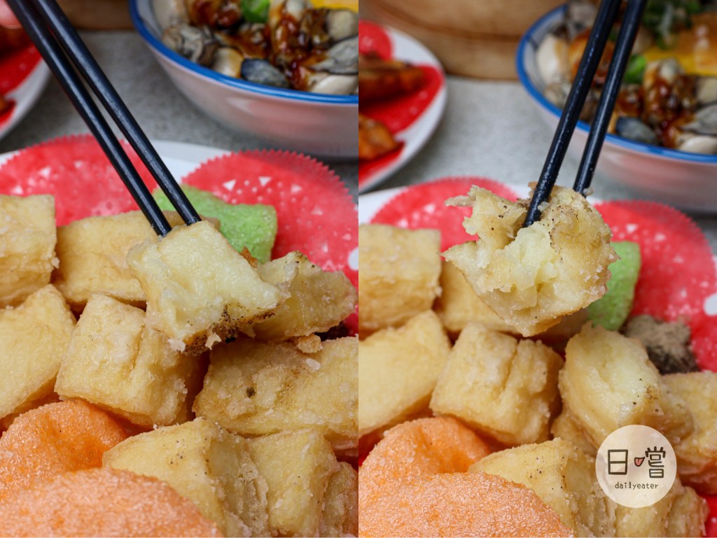 糕渣的話要吃記得注意不要馬上入口,因為真的會非常燙口😂糕渣的口感軟糯接近入口即化,沾著胡椒鹽吃多了點鹹香滋味,如果想品嚐道地的宜蘭小吃絕對要點這道