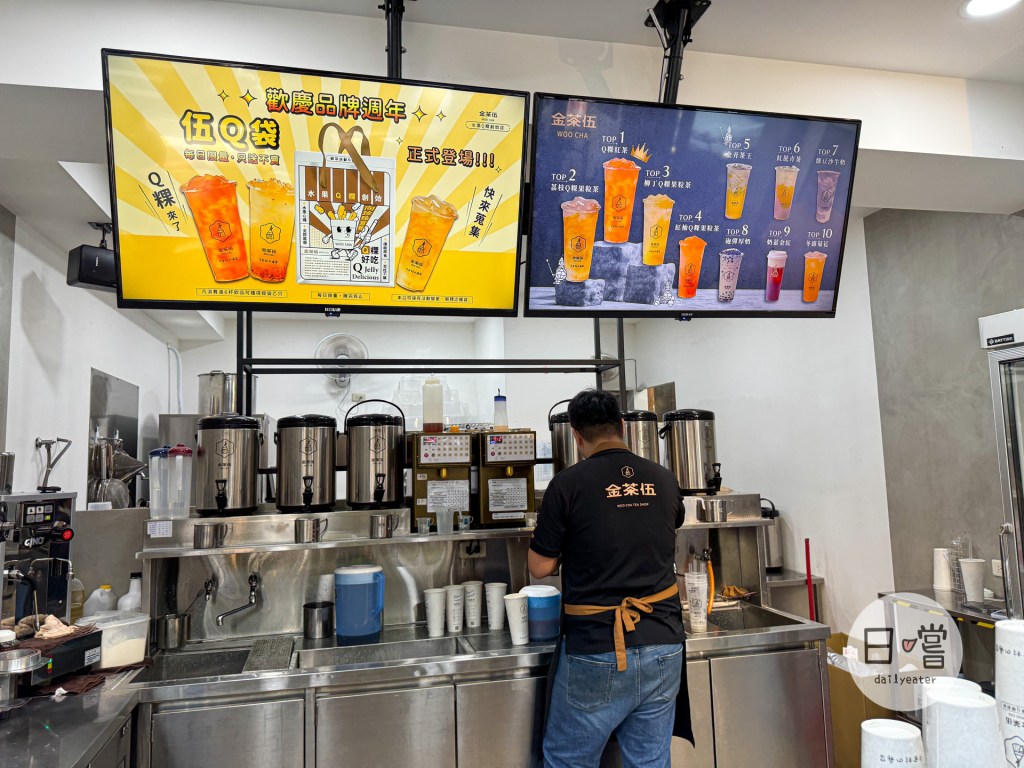 金茶伍店內的環境還滿舒適,跟一般手搖飲店不同的是在「店內點餐」不管是風吹雨淋這裡都不用!而且旁邊還有個打卡牆,想在裡面休息喝個飲料也完全沒問題👌🏼