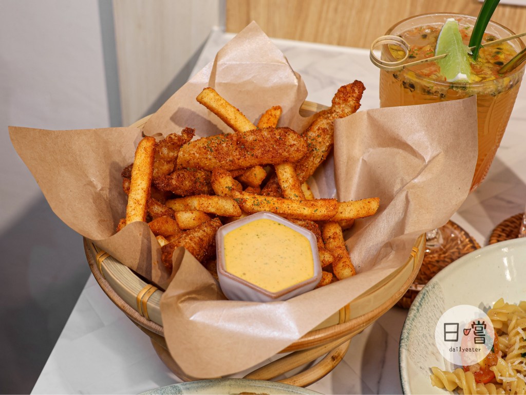 餐點部分有別於印象中的南洋料理,他們家的料理是南洋料理中還有西式料理的元素在裡面!像是開胃菜的沙拉,裡面就有像米線、炸豬皮等南洋料理會出現的食材~而義大利麵更是結合了紅咖哩、又或者是打拋豬,創造出不同的滋味!而炸薯條的香料粉真的搭配得太好,有來用餐的人絕對不能少了它