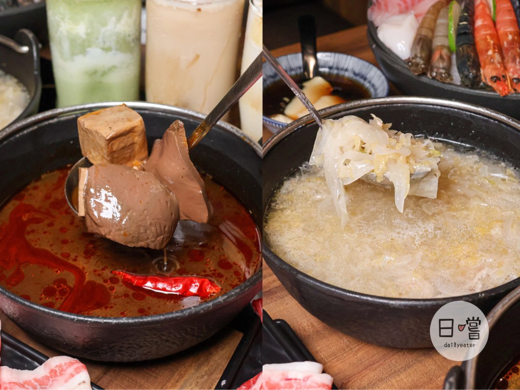 這次跟朋友一起吃的是甜蜜雙人套餐,湯品有五種湯頭可以選,除了和風昆布其他四種都可以加價升級!這次就選了「川蜀麻辣」、「酸菜白肉」兩種湯頭,其他還有養身藥膳跟不定時也會推出季節限定的湯頭