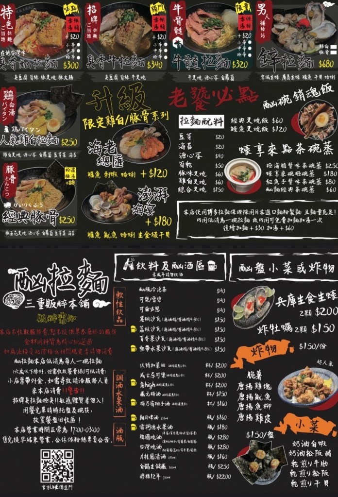 在三重國小站對面隱藏著去年開幕不久的拉麵,從下午五點就開始營業到凌晨三點,如果是想在大半夜來一碗熱騰騰的拉麵但又不想吃一蘭的人,這家酗拉麵是在新北三重的新選擇