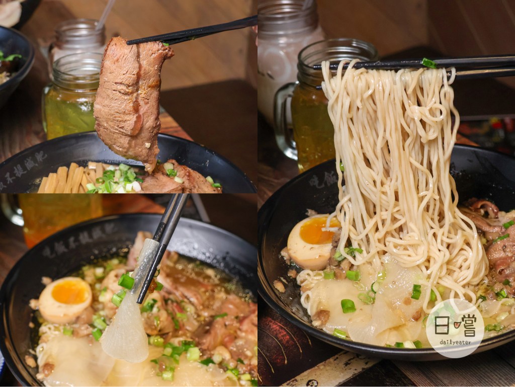 湯頭以牛髓燉煮多時,所以一撈湯頭就可以看到滿滿的牛油在上面!一入口就可以喝到相當重的牛味,是吃拉麵沒有吃過的湯頭感,個人覺得是接近清燉牛肉麵但牛味又相對更明顯的味道!裡面還有蘿蔔、幾片牛肉跟牛髓在上面,一整碗看起來就相當的豐盛