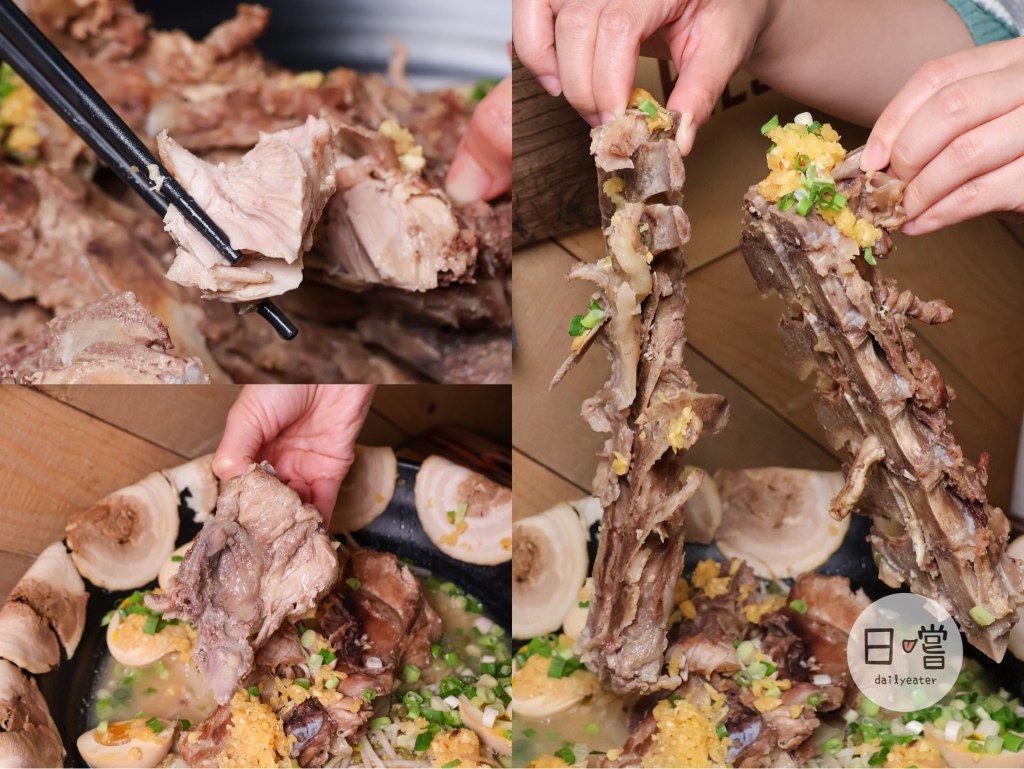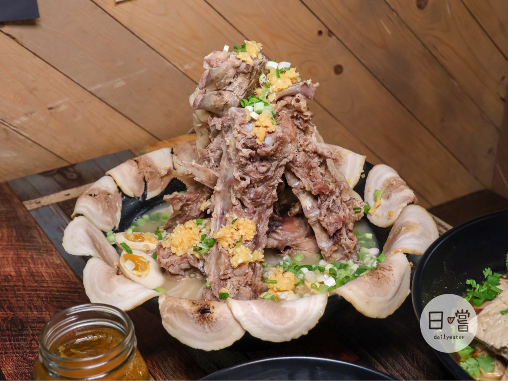 被堆疊成一座小山的龍骨,一開始真的超不捨得把它拆掉,而這麼巨量的龍骨對於愛啃骨頭的人真的是超級幸福😍建議一定要找幾個也愛啃骨頭的人去,絕對會馬上嗑光光😂龍骨旁也有肉可以吃,建議可以先沾著拉麵的湯一起吃,讓肉吸收湯頭變得更濕潤一點