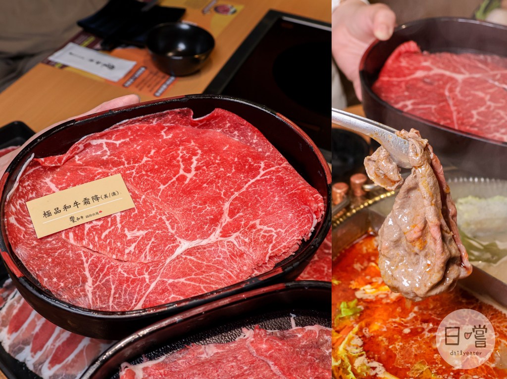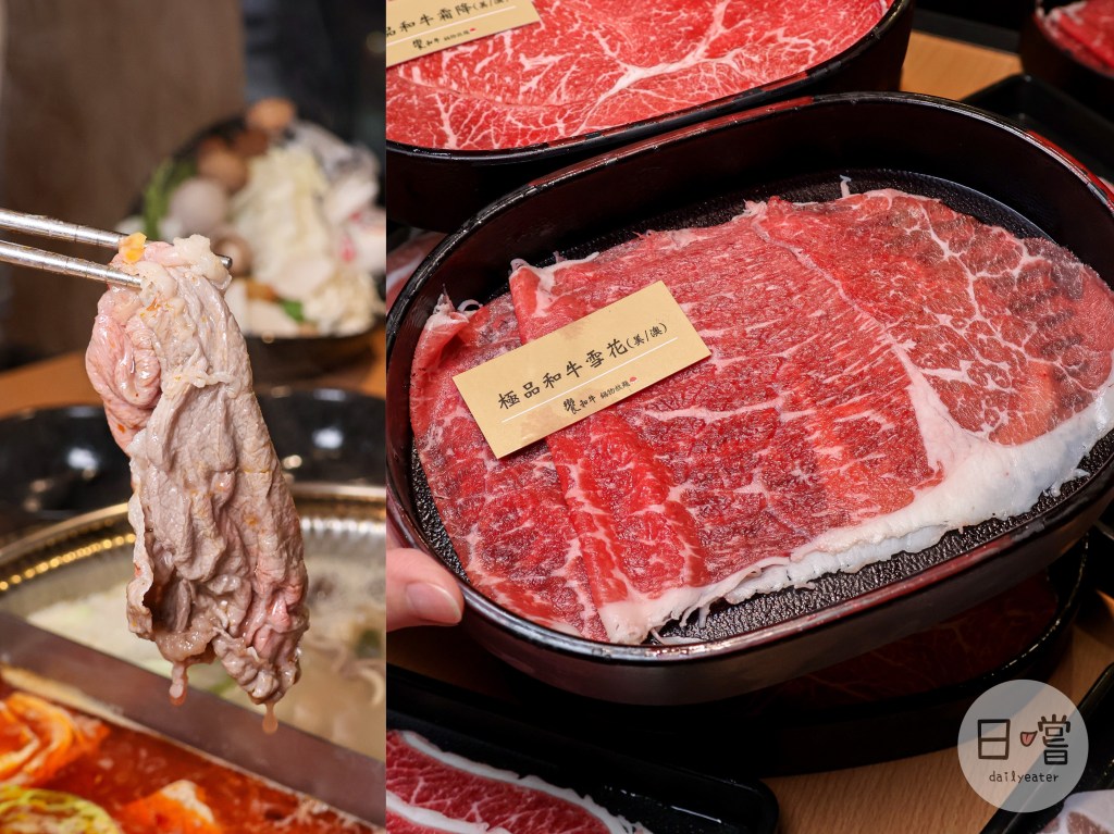 雪花和牛的油脂跟霜降和牛相比要更多了一點,所以雪花和牛也更軟嫩一些,尤其入口時吃到油脂的部分嘴裡還會充滿的和牛的香氣;霜降和牛口感相對紮實可是肉質也還是保有其嫩度😍兩種和牛建議只要在鍋中涮個大概三到五秒就可以吃到最棒的口感!