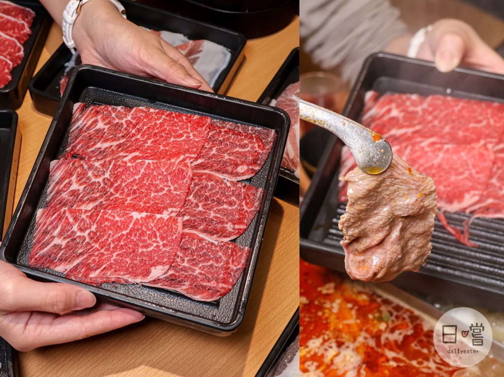 兩種板腱牛的特色是脂肪少而且肉的口感相對紮實,涮在麻辣湯中讓辣汁跟肉一起入口就超級滿足!