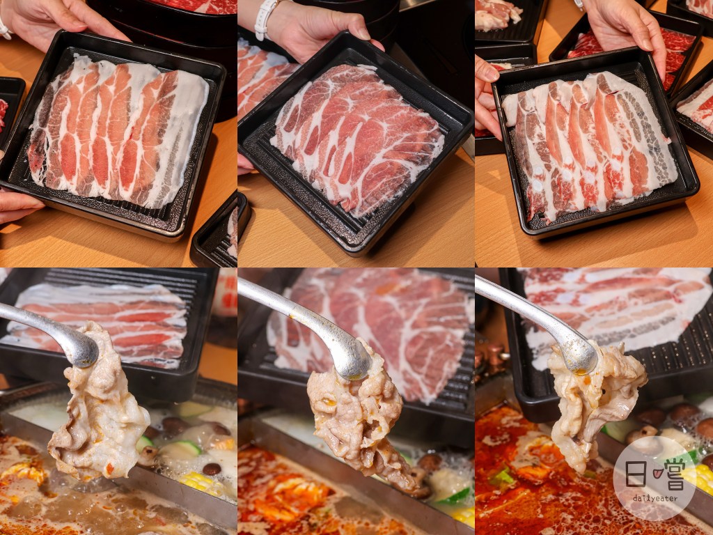 兩款和牛不管是霜降又或是雪花都好吃,相較於其他牛肉來說和牛的肉質又更好👍🏼稍微涮個幾秒就可以吃到很軟嫩且充滿牛味的火鍋肉😍牛肉有板腱牛、雪花牛跟無骨牛小排,上桌都可以看到很美的油花外,本身肉質再加上這個價格真的是滿意😆而如果只是單純想吃豬雞的朋友,在三種豬肉的口感也都完全不一樣,不會有讓人覺得很膩的感覺!