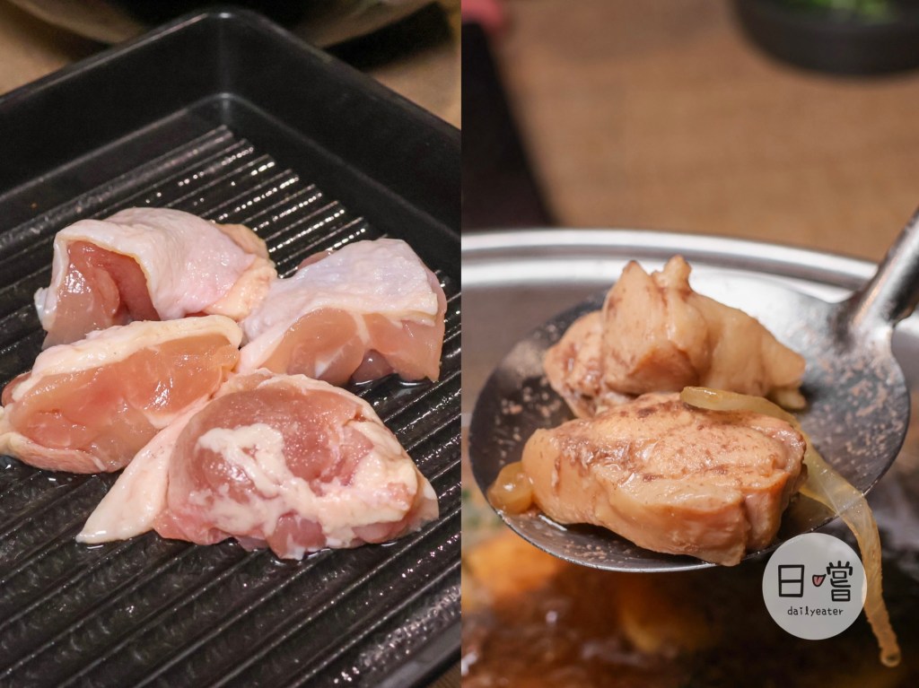 相對於有五種牛肉,豬跟雞的選擇就只有一種。不過兩種肉都不是進口,都是使用我們台灣國產的豬肉以及雞肉!不管是雞還是豬要下鍋的時間相對比較長,但更能吃到壽喜燒鍋裡那甜甜鹹鹹的滋味😍而且也不用擔心煮久肉質會變柴變老,只要再加個蛋液就一樣很滑嫩好吃了!