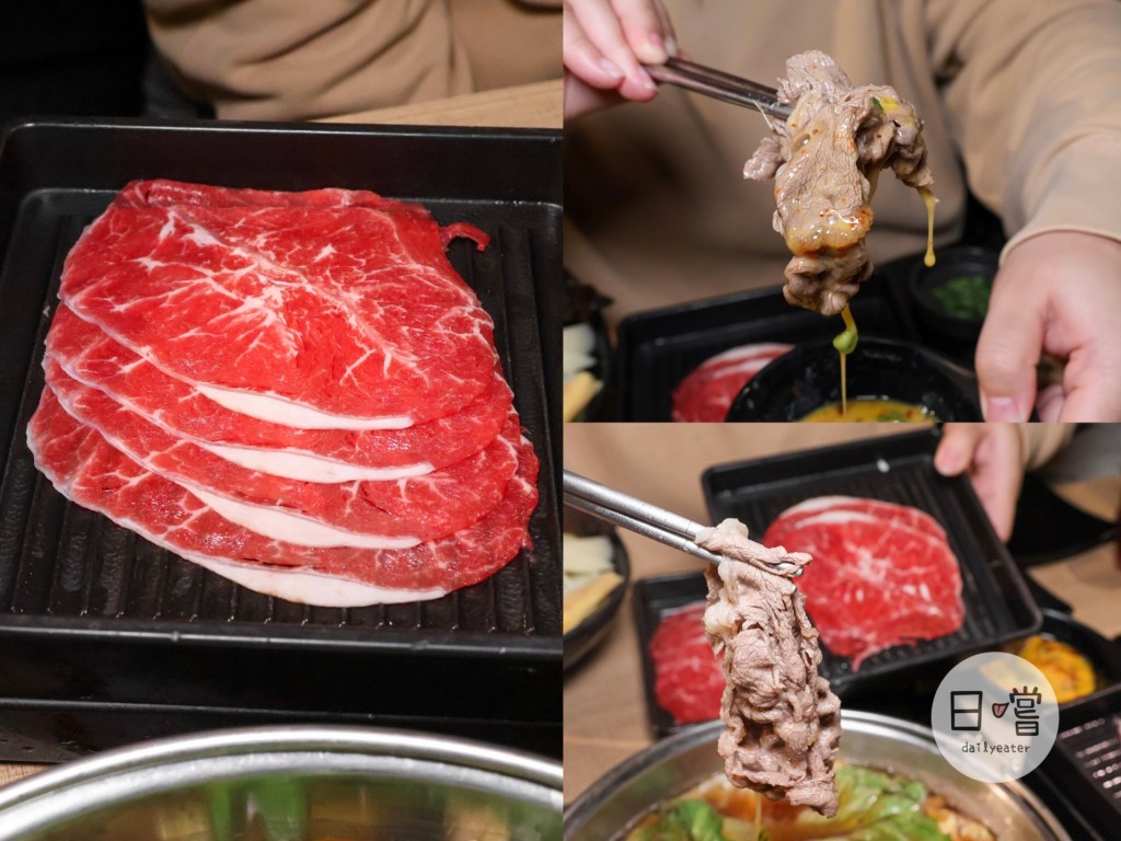 這道牛壽喜手卷有用海苔當底,建議一上桌就要趕快吃才不會讓海苔軟掉!入口除了可以吃到酥脆的海苔香再來就是富含油脂的牛肉片,我還把肉片再放上鍋中涮了一下,吸收了醬汁也很好吃😍