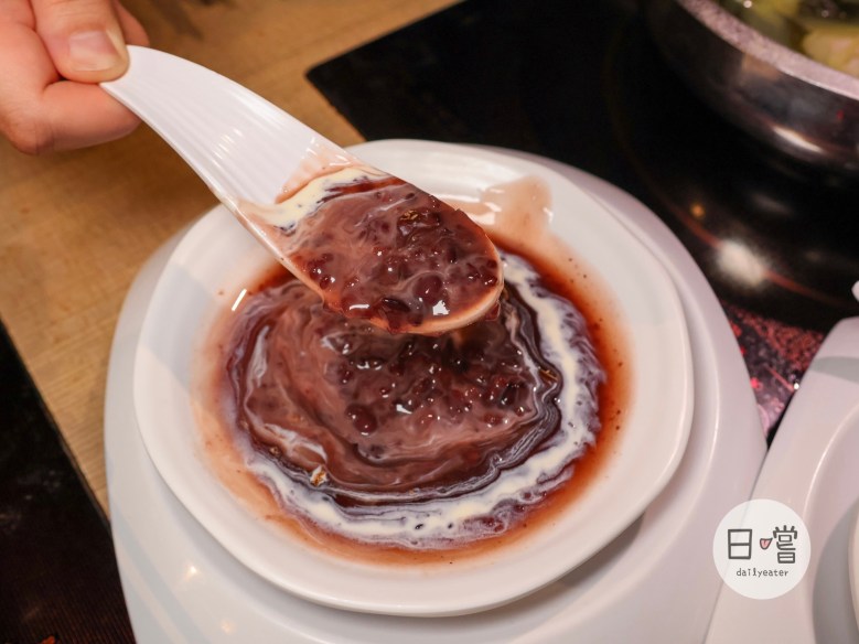 除了麻糬燒跟年糕,最後也會附上餐後甜點(一人一份),因為剛好加上朋友有三個人,就各自選了黑蜜香草冰淇淋、仙草山粉圓甜湯跟紫米紅豆甜湯!