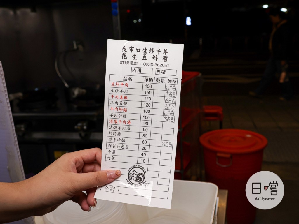 他們家主要有分成生炒牛/羊、羊肉/牛肉炒麵、羊肉/牛肉蓋飯,而他們家所使用到就是像豆菜麵的那種寬黃麵