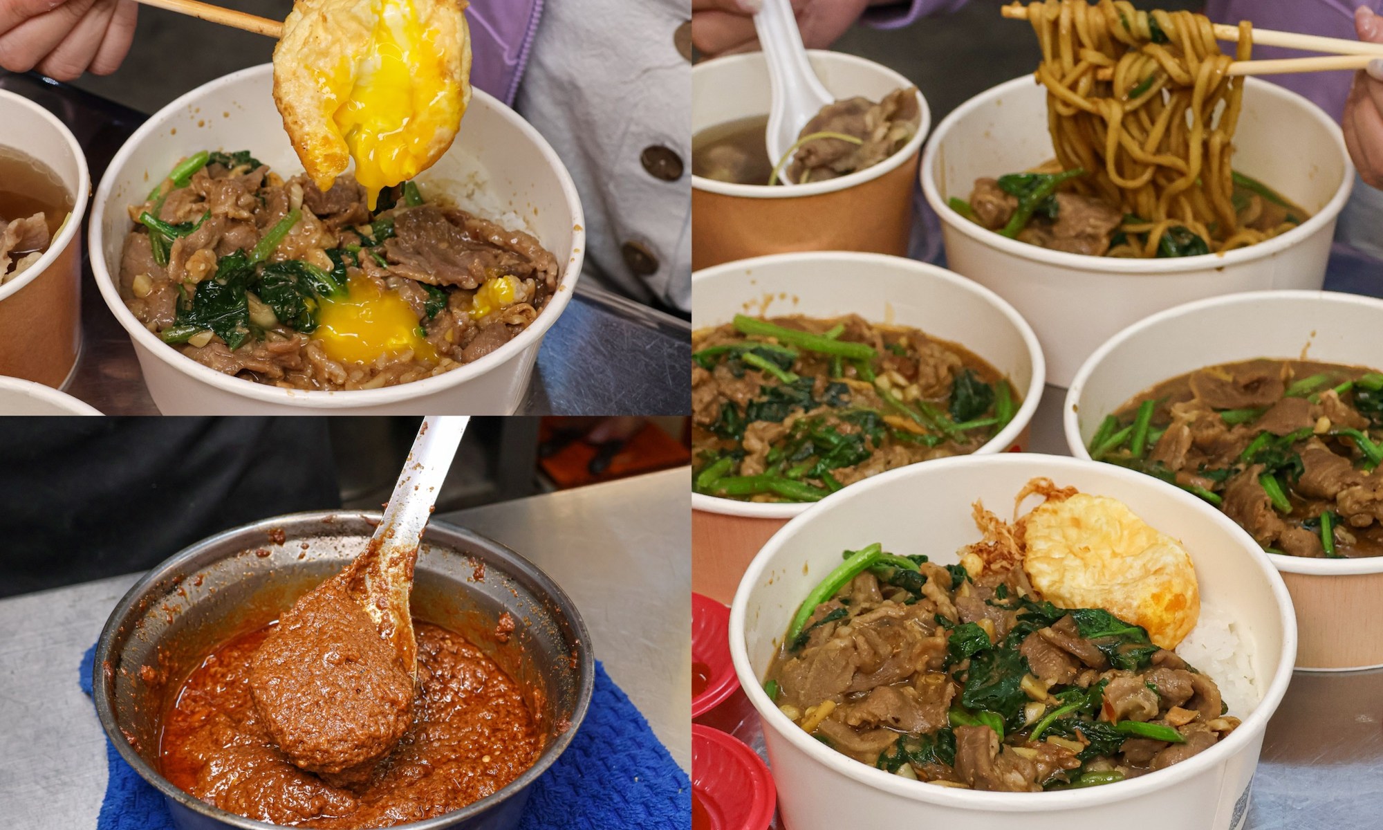 生炒牛羊除了可以單點選擇加飯、加麵,個人更喜歡蓋飯,蓋飯上還多了顆炸蛋,半熟蛋液拌在一起真的不能錯過它!最後在點碗溫順的清燉羊肉湯實在是太幸福了!