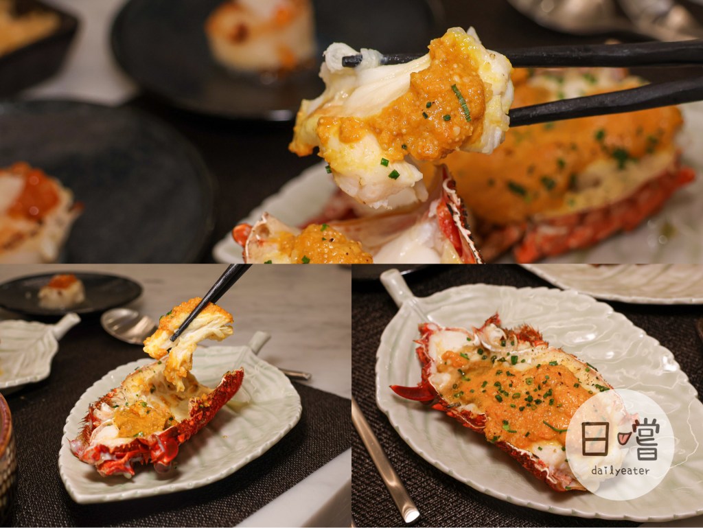 第一吃的炙燒水姑娘龍蝦海膽醬,在蝦頭上面放了海膽醬跟灑上帕瑪森起司粉進行炙燒,炙燒的過程那香氣逼人讓人好想趕快吃到😍