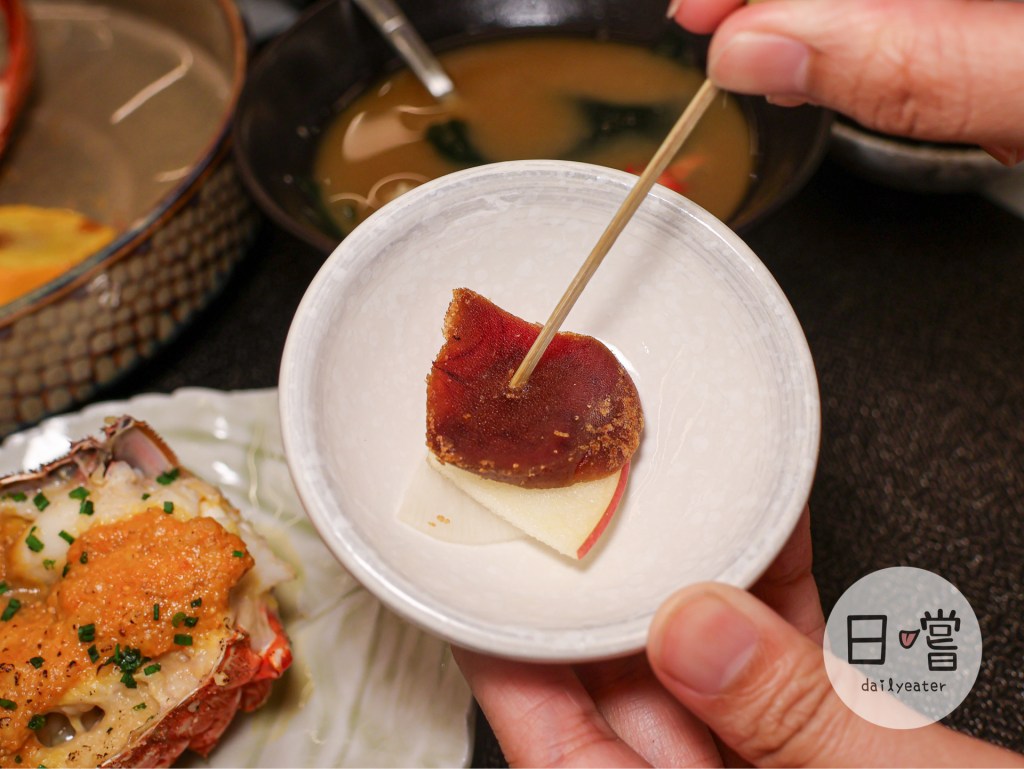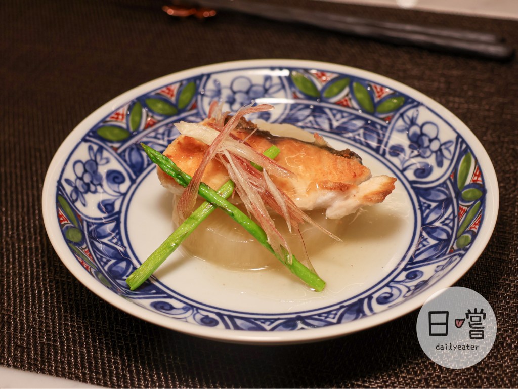 樂饗宴是時令鮮魚大根煮,很特別的是在魚肉上加上茗荷,又稱為日本薑但吃起來不像薑更像大蔥!搭配已經燉煮入味的蘿蔔味道跟口感可以說是相當有層次!