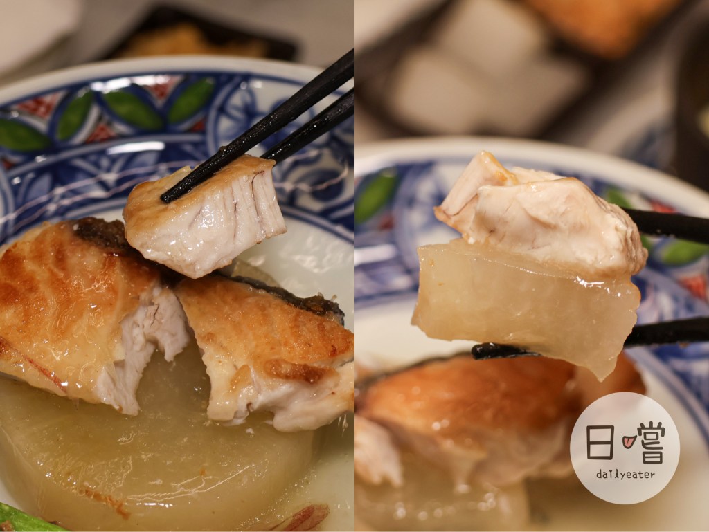 口感相對於前面的「時令鮮魚大根煮」,魚肉的肉質更為紮實,不僅單吃也可以淋上金桔或是可以沾著胡椒鹽!建議先吃原味,感受到紅甘魚的肉質跟鮮甜,再去做其他不一樣的搭配