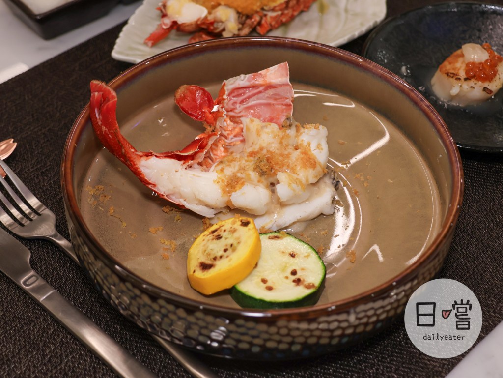 樂饗宴跟樂盛宴套餐的活體龍蝦料理有三吃,炙燒水姑娘龍蝦海膽醬、野生活龍蝦佐奶油醬以及鮮燉味增龍蝦湯