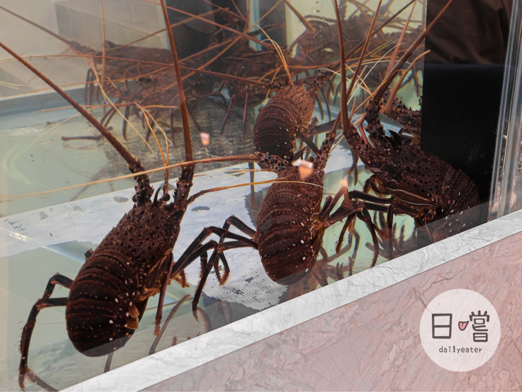 店內有兩層樓,大部分也都是可以看到師傅在料理的第一視角!環境明亮充滿日式風情外,店內還可以看到活體龍蝦,每天都會依照預約人數現撈料理,就是要給來明水然用餐的顧客最新鮮的食材
