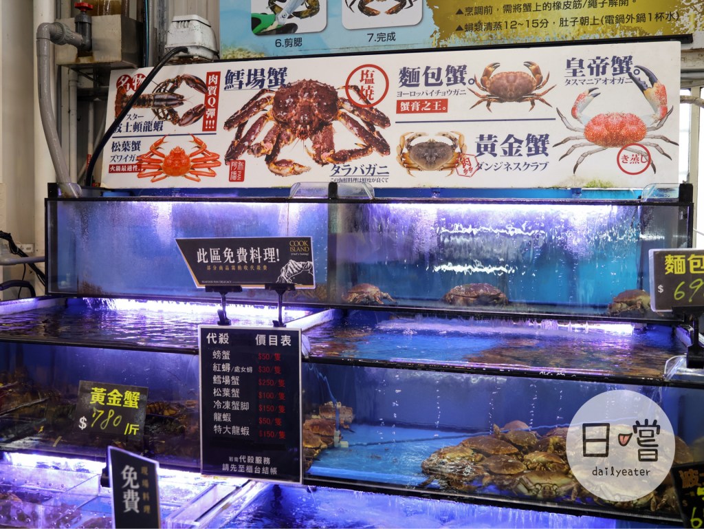 你們看看這一區!光魚的種類就那~麼~多~現場看肥豬蝦、鱈場蟹腳根本都在比巨大程度的!覺得很貼心的一點是,如果要單買一隻鱈場蟹那個價格真的是有夠高😂想跟朋友試試鱈場蟹腳,這邊也有提供單賣服務,這樣一樣能用更便宜的價格來享受鱈場蟹的美味,真的是有夠幸福欸!