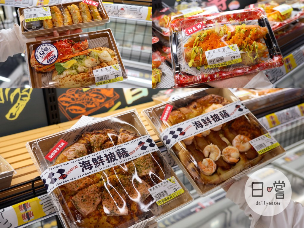 再來可以看到熟食區,這裡把各種海鮮做成了常見的料理,如潛艇堡、披薩、可樂餅等,個人覺得不管是在擺盤、顏色、味道都處理得很不錯,色香味都兼顧了!