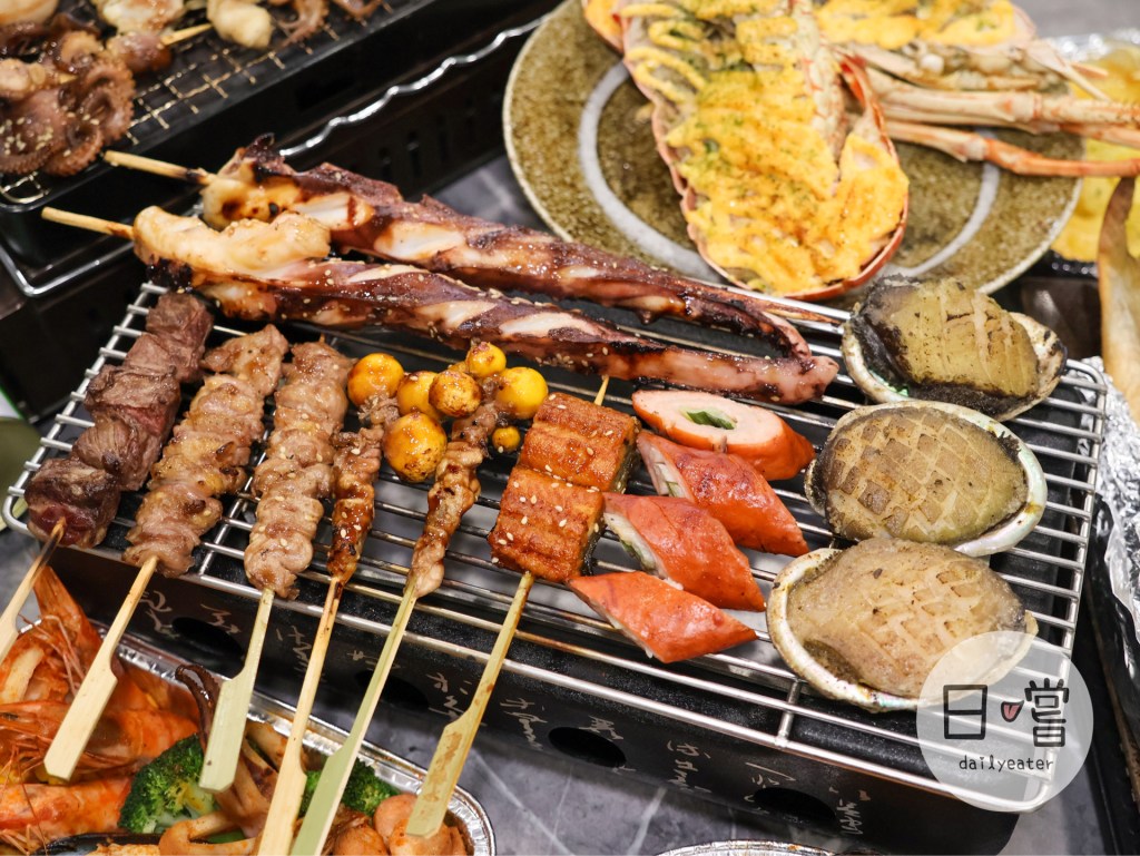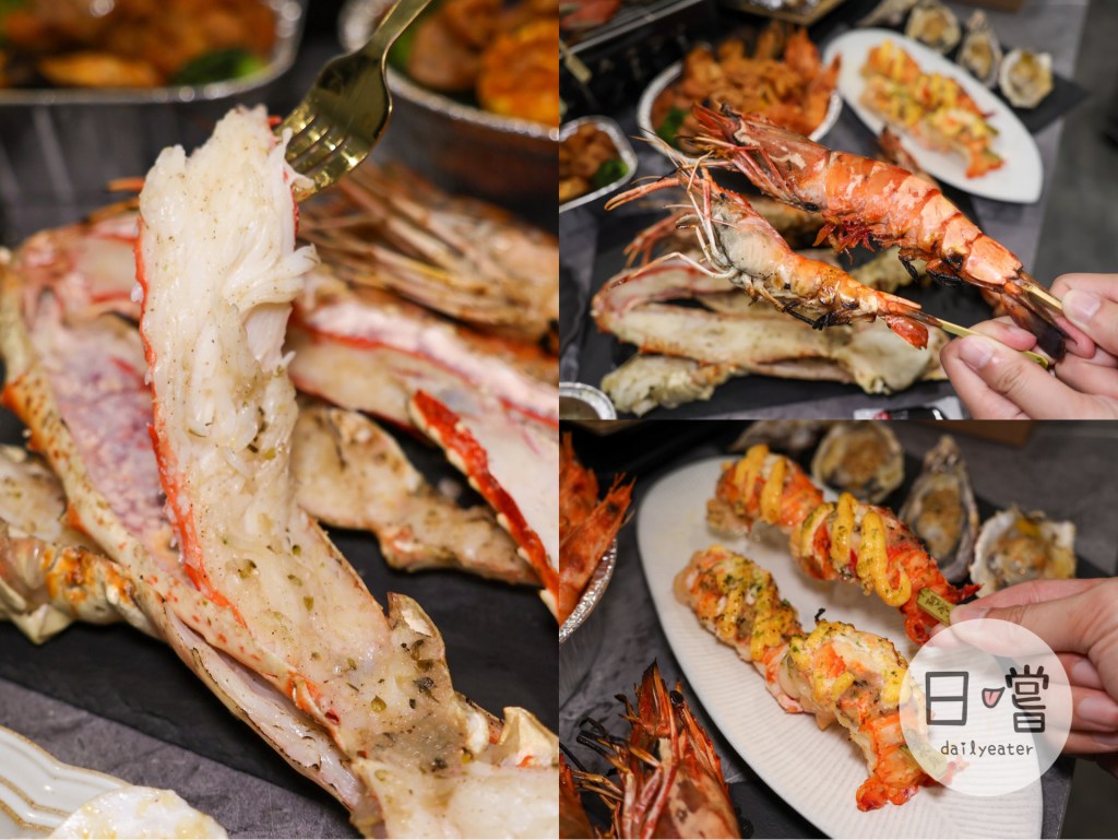 現場可以看到各式各樣的烤物,光是蝦子就可以吃到明太子龍蝦、龍蝦尾還有比手掌還大的肥豬蝦;滿喜歡他們在處理海鮮還會多些他們的特調醬料,甲殼類除了蝦子還有甲羅燒、鱈場蟹等料理,但最讓我期待的絕對是那巨大章魚腳,超大一隻整個就很有份量