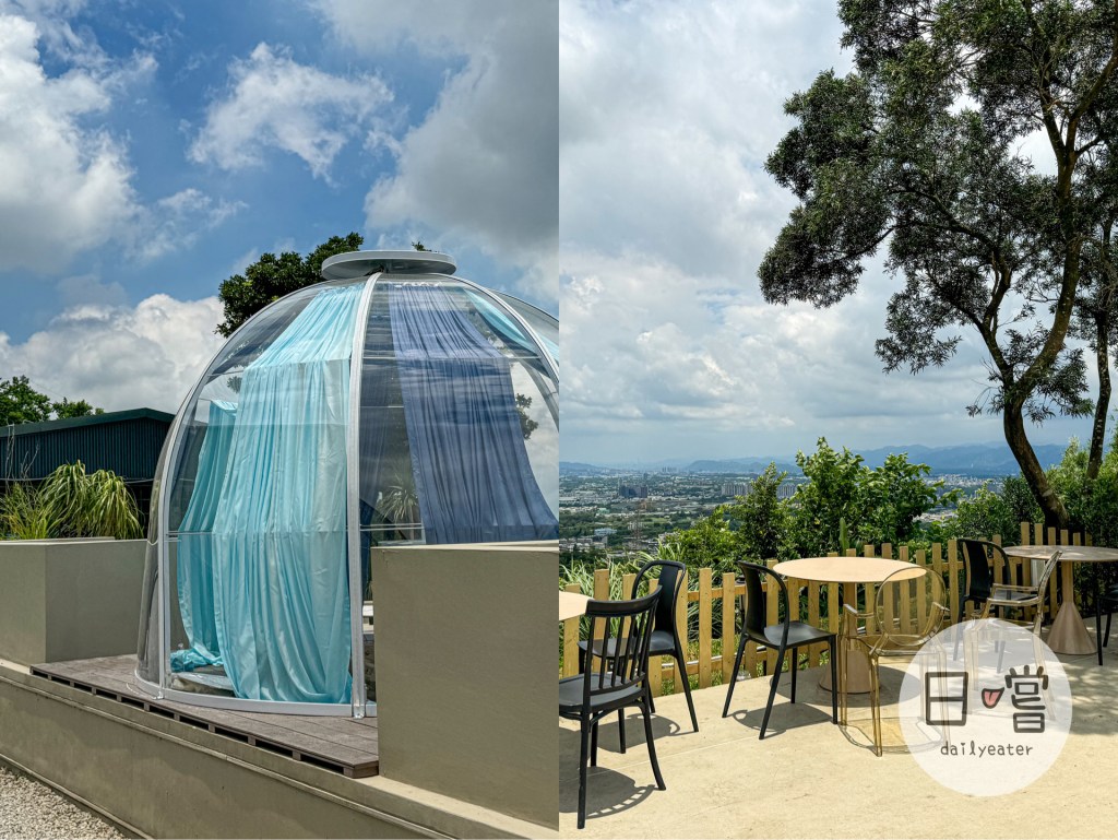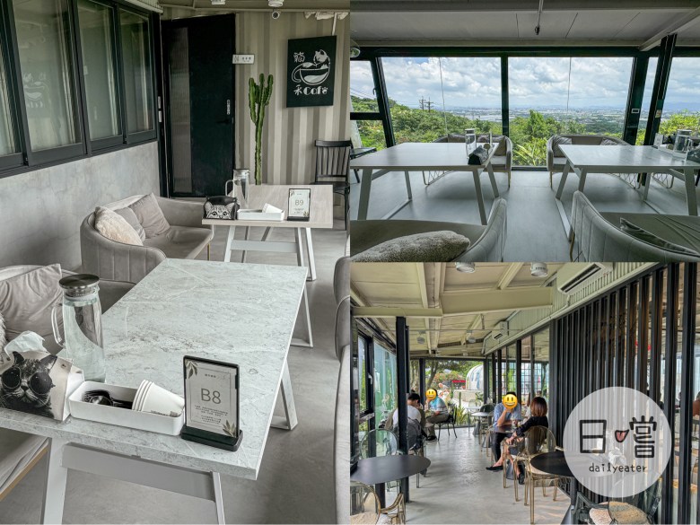 貓禾咖啡位置主要分成店內跟店外,在店外座位區可以看到整片桃園的市景!如果是比較多人的話還可以選擇在他們家的玻璃屋,光是從外觀看就超級美😍(玻璃屋用餐有低消,建議可以打電話詢問)