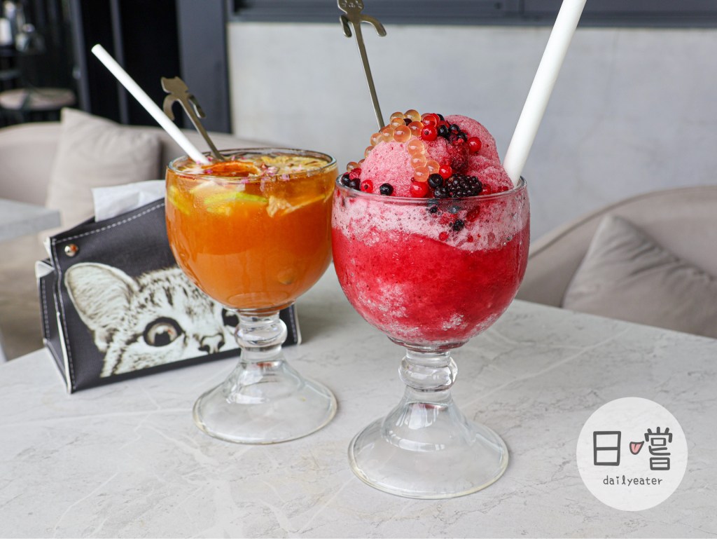 如果說來貓禾咖啡要點什麼飲料,我絕對是大推他們家的水果系列!這次點了玫瑰水果茶跟莓果氣泡飲,不管是哪一種都很繽紛很美😍