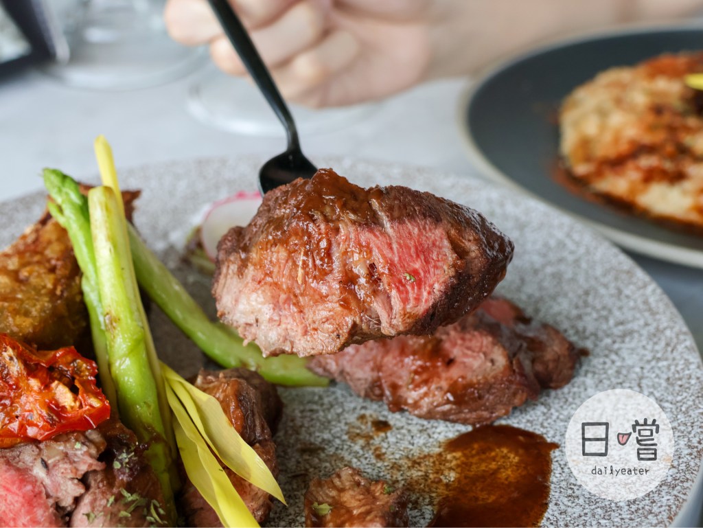 牛板腱牛排的中間還可以看到很粉嫩的部分,在軟嫩的口感中還有一點嚼勁😍對愛吃牛肉的人來說,這是何等的幸福