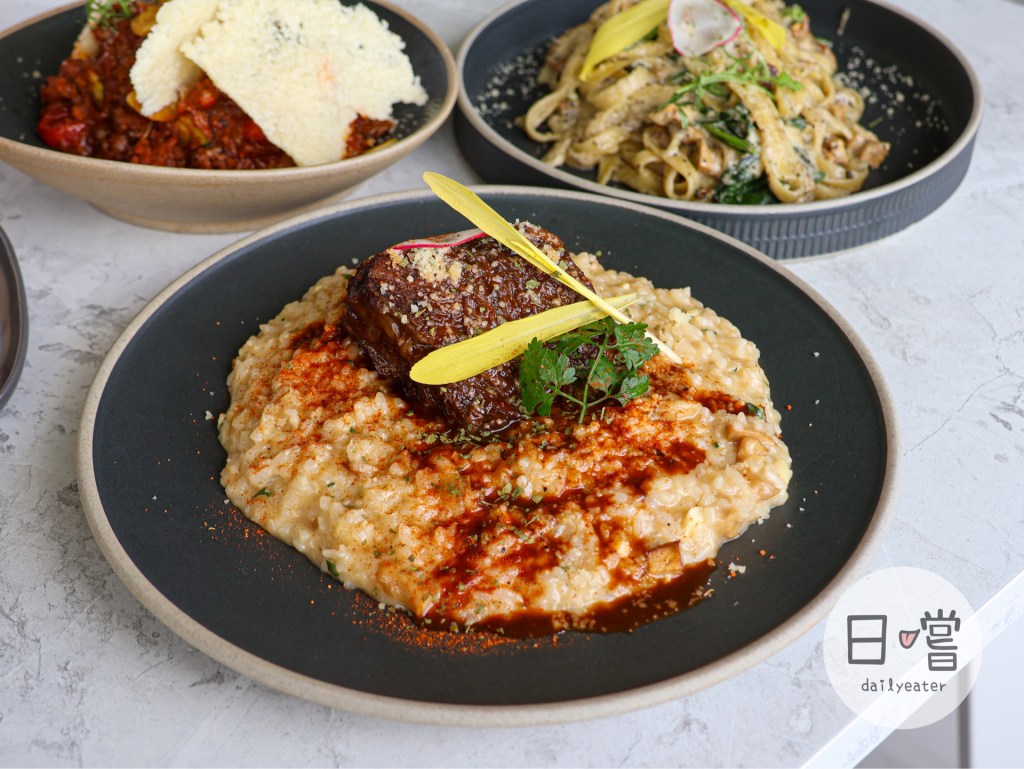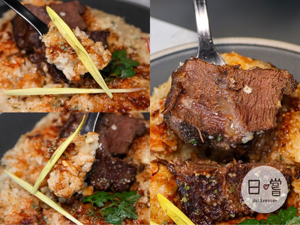 朋友點的這道紅酒燉牛頰燉飯,燉飯收的很乾、醬也入味!上面還會有燉牛頰流出來的肉汁,建議可以把醬汁跟燉飯拌勻,吃起來味道更有層次